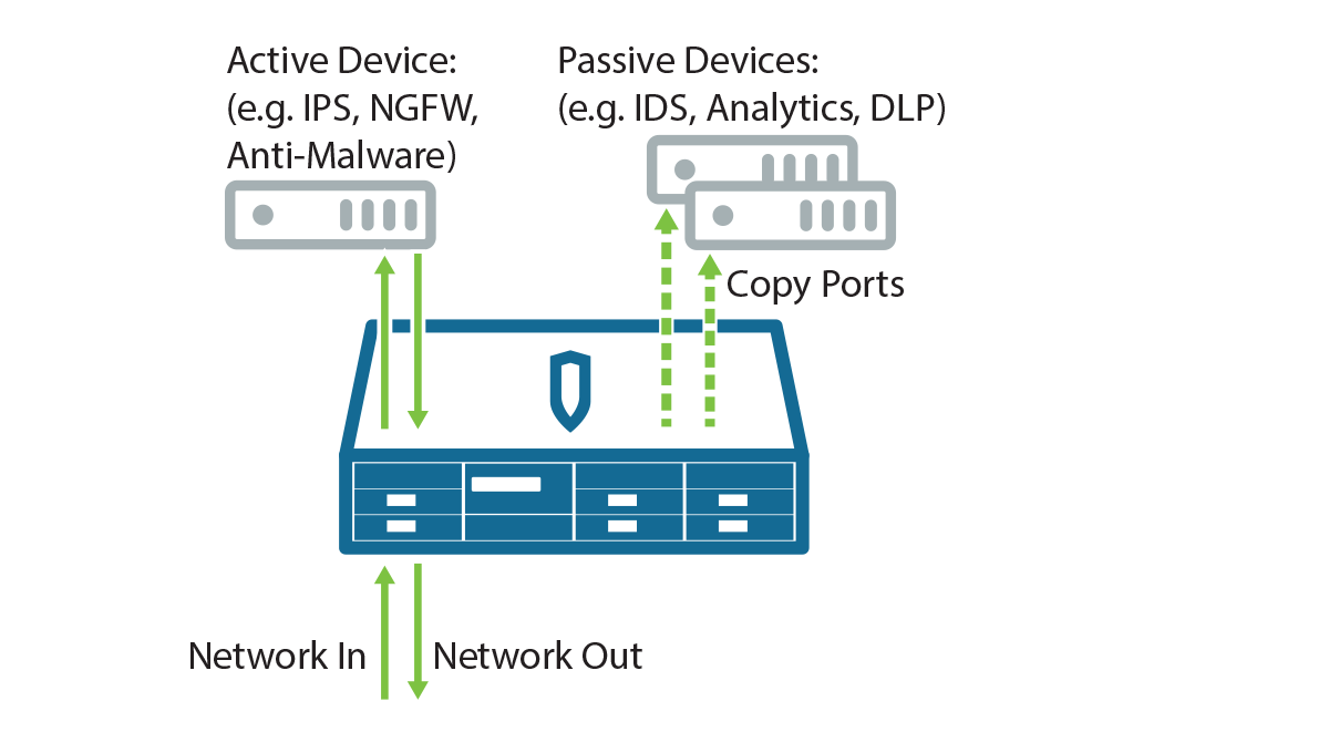 - Supports multiple network segments and can feed active and passive security appliances simultaneously
