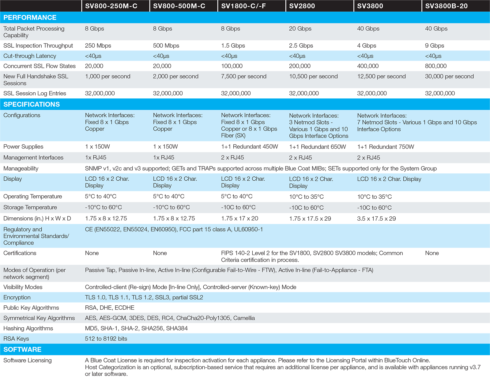 SSL Visibility Appliances SV800/SV1800/SV2800/SV3800/SV3800B-20